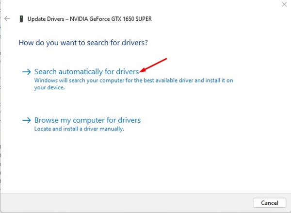 5. Su Come vuoi cercare i conducenti? richiesta, seleziona "Cerca automaticamente i driver".