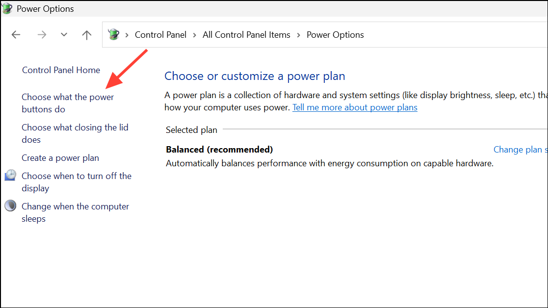 Passaggio 2:Vai aSystem and Security > Power Optionse selezionaChoose what the power buttons do.