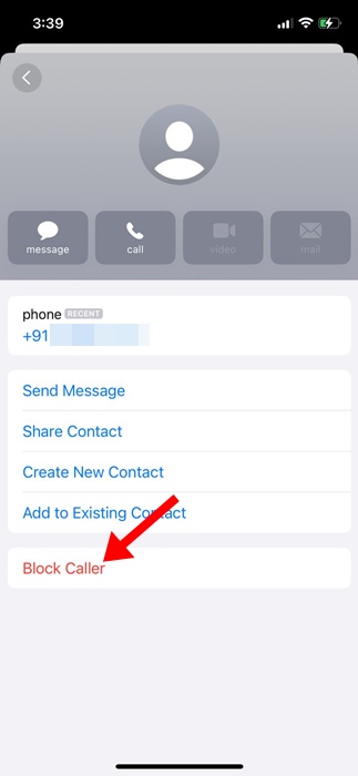 5. Nella schermata Informazioni, toccareBlocca chiamante.
