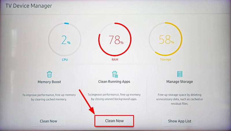 - Infine, seleziona ilPulisci adessoopzione sotto ilApp per l'esecuzione pulitaper chiudere tutte le app in background sulla tua TV Samsung.