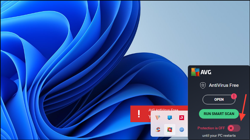 Passaggio 1:Il software di sicurezza potrebbe bloccare i file per la scansione o la protezione, causando errori di autorizzazione. Disattiva temporaneamente il tuo antivirus o Windows Defender accedendo alle impostazioni dell'applicazione o al Centro sicurezza PC di Windows.