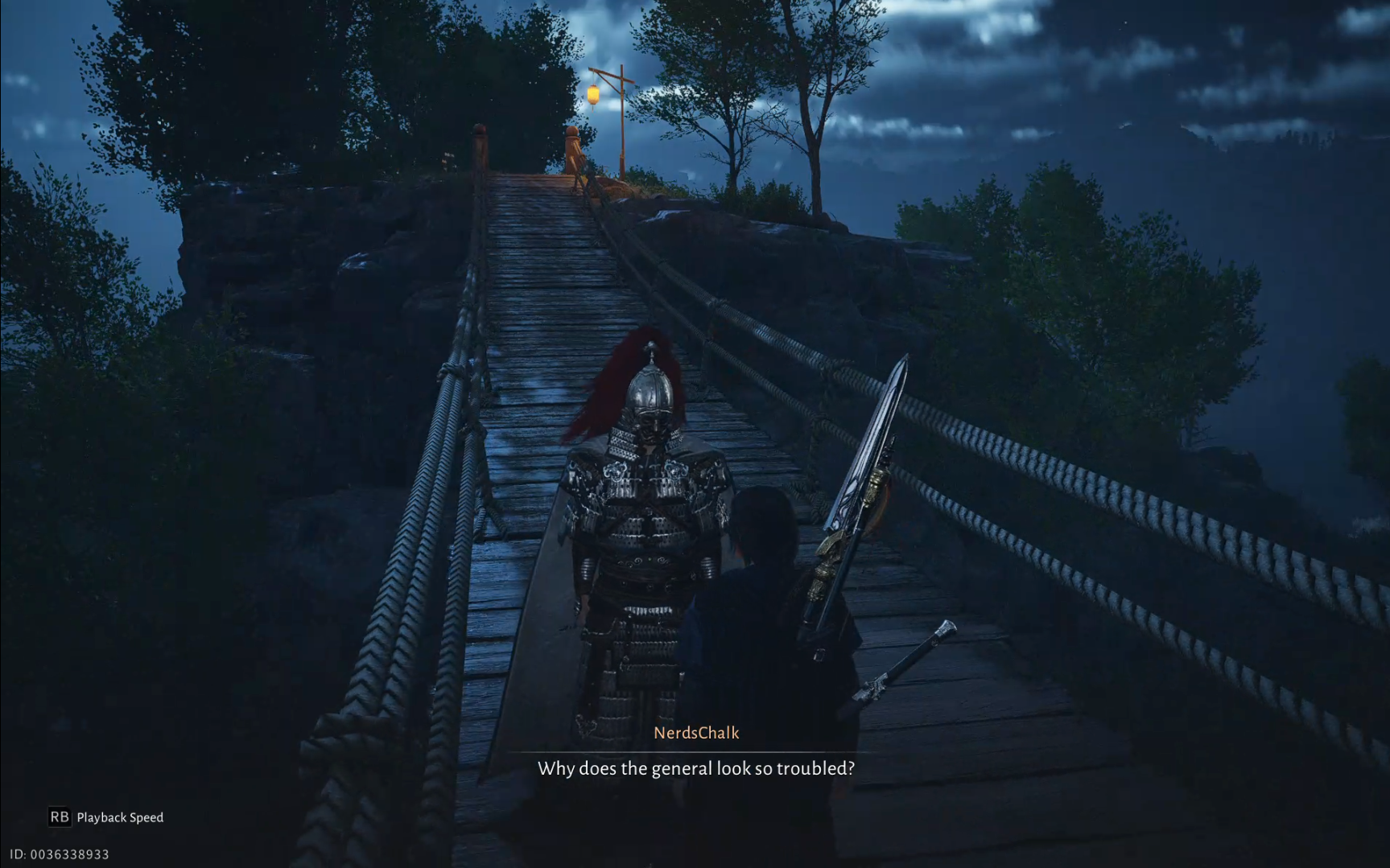 Per iniziare questo racconto errante, dirigiti al ponte che collega l'Abisso di Pipa e il Tempio Marziale e parla con Li Shoujie in piedi sul ponte.