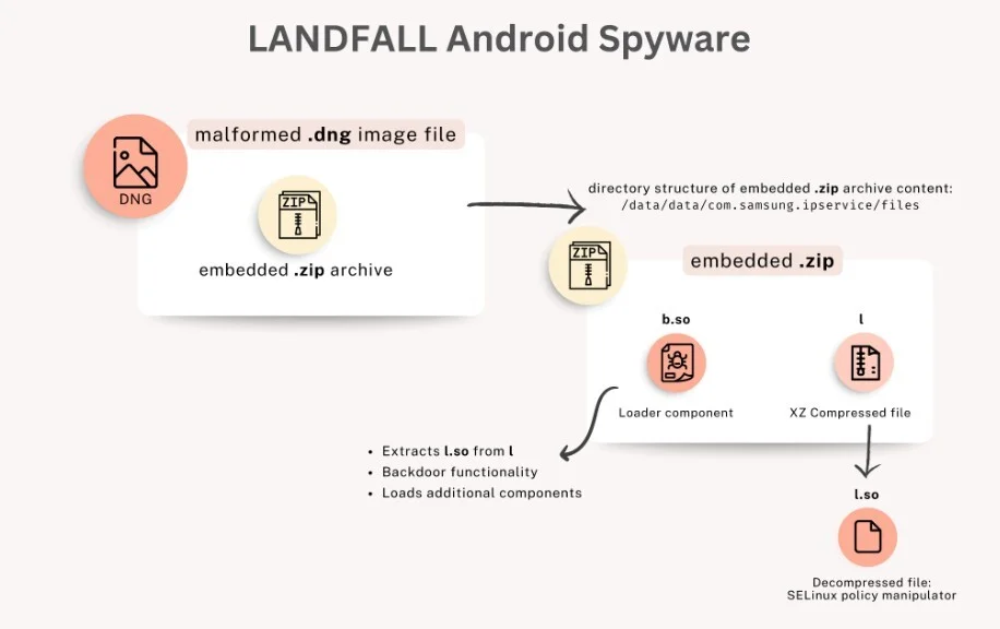 ha consentito agli aggressori di incorporare uno spyware chiamato LANDFALL nei dispositivi Samsung