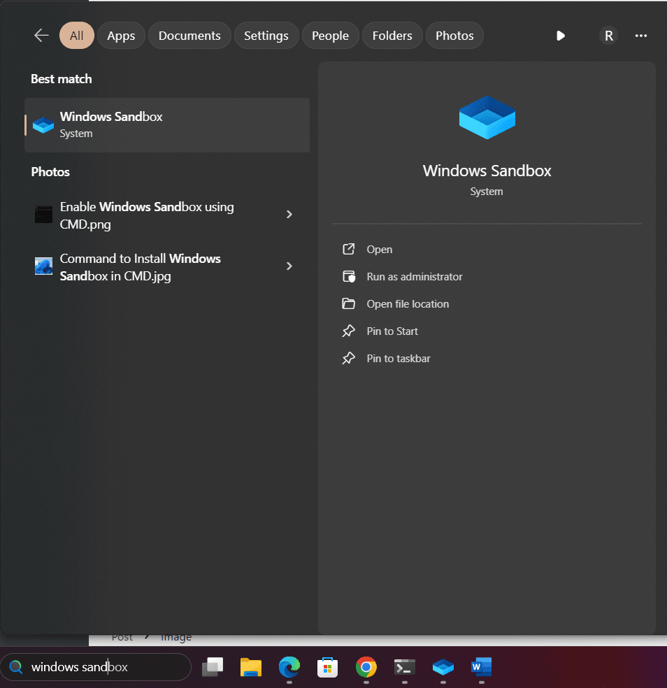 - Per eseguire Sandbox, vai al menu Start e cercalo, fai clic sulla sua icona quando appare nel risultato della ricerca.