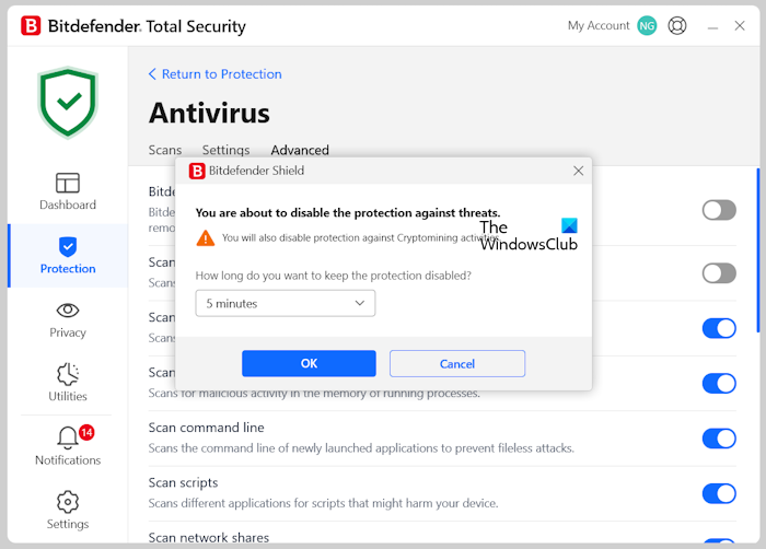 Oltre a disabilitare l'integrità della memoria integrata, devi vedere se puoi disabilitare un antivirus di terze parti, se ne hai uno. Quindi, vai avanti e disabilita l'antivirus e vedi se riesci ad avviare il programma. Se il programma si sta avviando, dobbiamo aggiungerlo alla lista consentita.