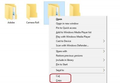 ATaglia o copia un file o una cartellasul tuo PC, fai semplicemente clic con il pulsante destro del mouse e seleziona'Taglio'O 'Copia'. Vai alla cartella in cui desideri ottenere il file o una cartella, fai clic con il pulsante destro del mouse e seleziona "Incolla".