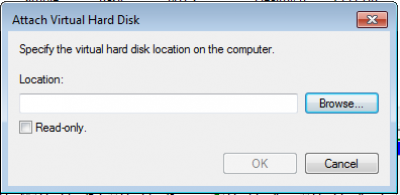 Successivamente, verrà visualizzata una finestra sullo schermo del tuo computer. Fare clic sul pulsante "Sfoglia" e cercare il file di backup dell'immagine del sistema con estensione .VHD. Conserva ilSola letturacasella deselezionata.