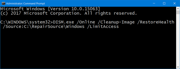 DISM.exe /Online /Cleanup-Image /RestoreHealth /Source:C:\RepairSource\Windows /LimitAccess