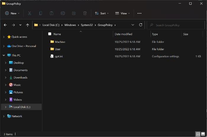 - Quindi fare clic suFinestre>Sistema32>Politica di gruppo.
