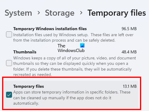- Vedrai diversi file lì. Per eliminare la cache del gioco, selezionaFile temporaneie quindi fare clic suRimuovi filepulsante. Se vuoi eliminare anche altri file temporanei, selezionali e clicca sul pulsante Rimuovi file.