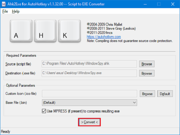 Ora, per convertire i file AHK devi scaricare il fileapplicazione e installala sul tuo sistema. Esistono due modi per convertire facilmente i file.