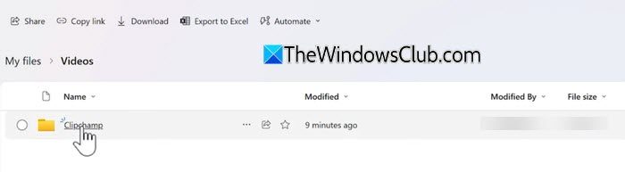 AprireOneDrive per le aziendee vai aI miei file > Video > Clipchamp.