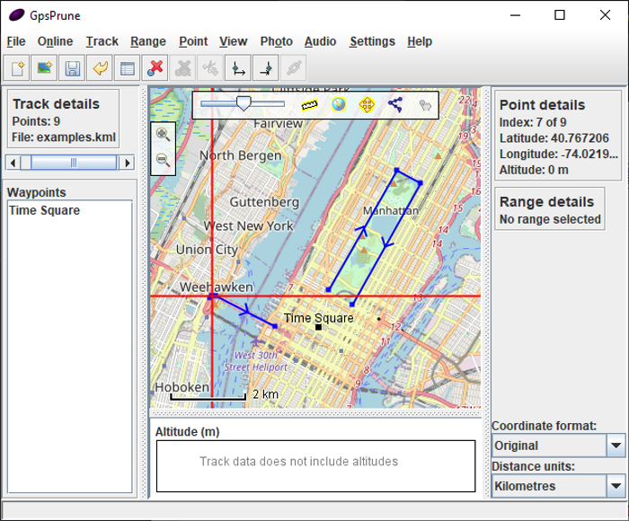 GPSPrune è un programma gratuito per modificare file KML in Windows 11/10. Usandolo, puoi modificare KML e altri file di dati GPS inclusi GPX, TXT e KMZ. Basta andare al suoFile > Apri fileopzione e importare un file KML. Quindi potrai visualizzare i dati geografici con le mappe salvate in file KML che potrai modificare facilmente. È possibile visualizzare una serie di waypoint e i rispettivi dettagli sui punti.