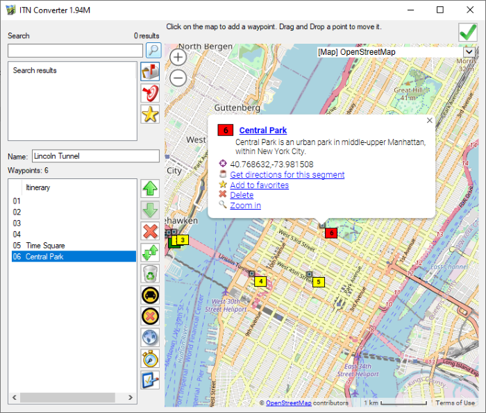 ITNConverter è un convertitore di file di dati GPS con il quale puoi anche modificare file KML. Supporta una varietà di formati per eseguire modifiche e conversioni tra cui KML, GPX, RTE, WPT, CSV, XML e altro. Basta aprire un file KML e quindi modificare il contenuto facendo clic suEditoreopzione. Il suo strumento Editor ti fornisce una mappa in cui puoi visualizzare tutti i waypoint. È possibile fare doppio clic sulla mappa e quindi fare clic suAggiungi all'itinerarioopzione per aggiungere il waypoint alla traccia o al percorso esistente.