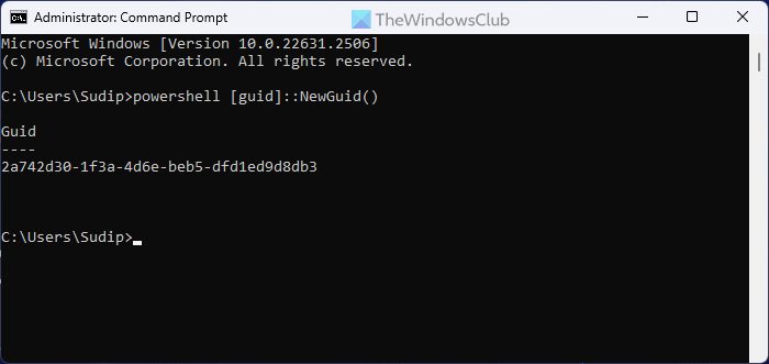 Per generare un GUID (identificatore univoco globale) in Windows 11/10 utilizzando il prompt dei comandi, attenersi alla seguente procedura:
