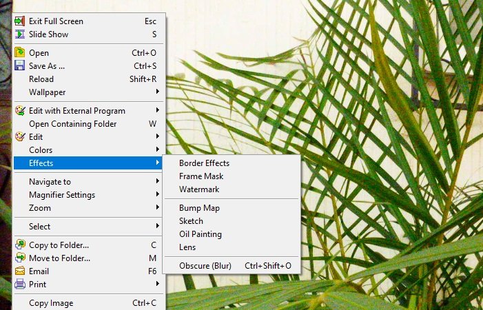 Effetti: Non ha dozzine di effetti a differenza di IrfanView, tuttavia, ci sono alcuni effetti interessanti che possono aggiungere brio alla tua immagine. Sono:
