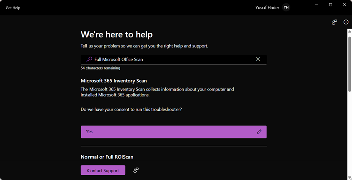 Una volta aperta l'app Ottieni assistenza sul tuo computer, ti verrà chiesto di fare clic suSÌper dare il tuo permesso per eseguire lo strumento di risoluzione dei problemi.