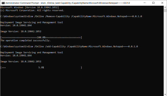 dism /Online /add-Capability /CapabilityName:Microsoft.Windows.Notepad~~~~0.0.1.0