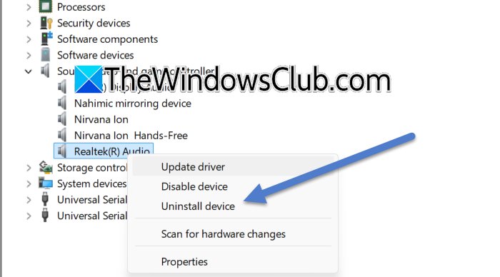 - Fare clic con il tasto destro sul driver audio Realtek e selezionareDisinstallare il dispositivo.
