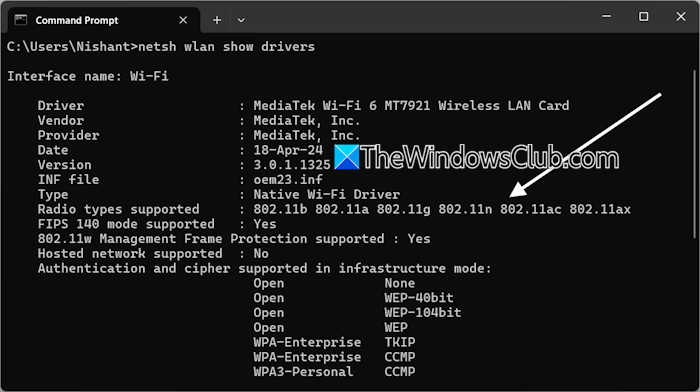 Innanzitutto, controlla gli standard o le modalità wireless supportati dal tuo computer. Apri il prompt dei comandi. Copia il seguente comando e incollalo nel prompt dei comandi. Successivamente, premiEntra.