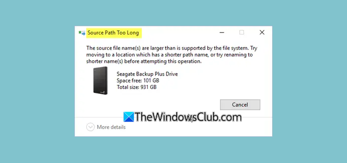 Correggi l'errore Percorso origine troppo lungo in Windows 11/10