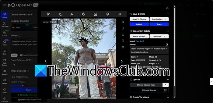 Open ART offre strumenti per generare immagini da istruzioni di testo, modificare immagini esistenti e persino addestrare modelli di intelligenza artificiale personalizzati per abbinare stili artistici specifici. Lo useremo per creare action figure. Per fare ciò, puoi seguire i passaggi indicati di seguito.
