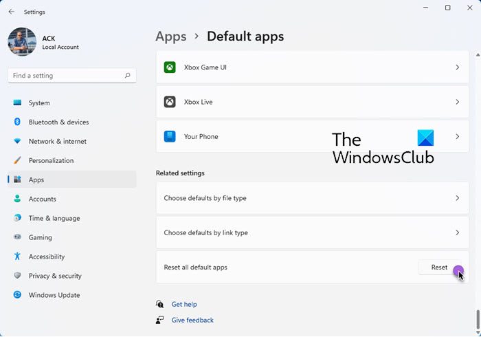Se desideri tornare alle app predefinite per tutti i file, consigliate da Microsoft, scorri la pagina e sottoRipristina le impostazioni predefinite consigliate da Microsofte fare clic suReset. Questo lo farà.