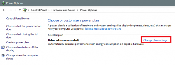 Per il piano di risparmio energia selezionato, fare clic suModifica le impostazioni del piano.Questo aprirà una nuova pagina.