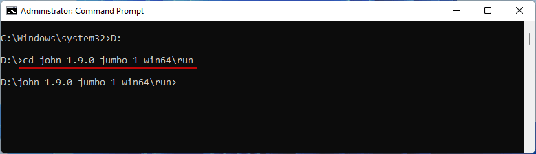 ステップ9:「cd john-1.9.0-jumbo-1-win64run」と入力して、 を押します。入力.