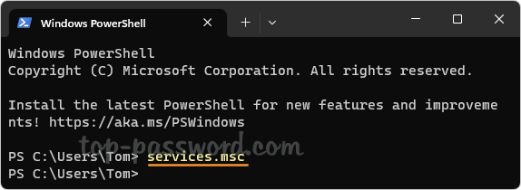 - Windows ターミナルを起動したら、次のように入力します。サービス.mscコマンドを入力して Enter キーを押します。