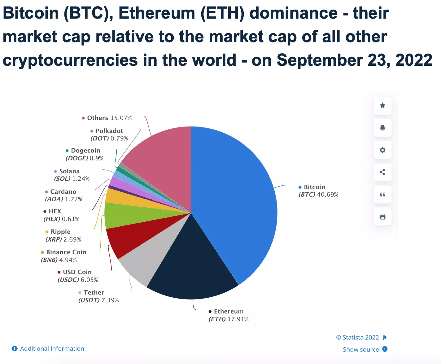 証拠が必要ですか?どうぞ。 2022 年の第 1 四半期には、仮想通貨詐欺による損失がほぼゼロに近づきました。3億3000万ドル。比較のために、2020 年の損失総額は 1 億 3,000 万ドル、2021 年は 6 億 8,000 万ドルでした。さらに、これらの詐欺の 70% はビットコインを標的としていました。そして驚くことはありません。スタティスタレポートビットコインは依然として暗号通貨の世界を支配しており、時価総額は40%を超えています。