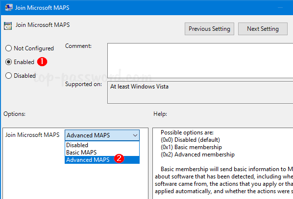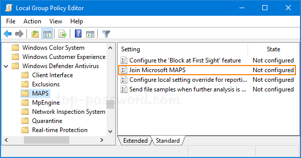 Computer Configuration > Administrative Templates > Windows Components > Windows Defender Antivirus > MAPS