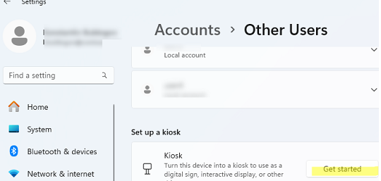 ローカル管理者権限を持つアカウントを使用して、[設定] で設定を変更したり、キオスク モードを完全にオフにしたりできます。