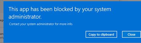 制限付きキオスク モード ユーザーは、XML ファイルで指定されたアプリケーションのみを実行できます。別の UWP アプリまたはクラシック アプリを実行しようとすると、AppLocker メッセージが表示されます。