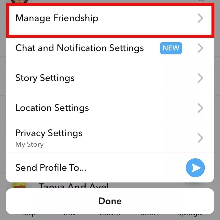 - 上部の 3 つの点をタップし、友情を管理する.