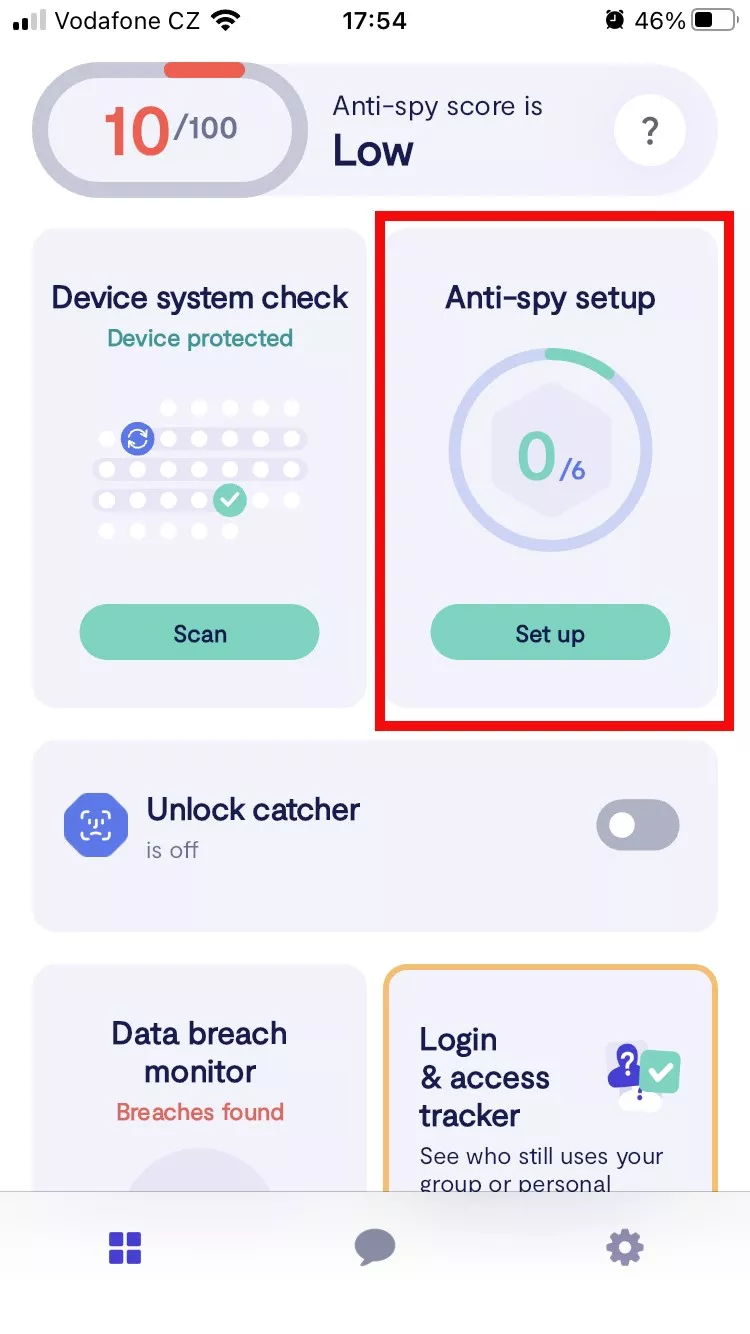 ステップ 2: Clario のメイン メニューで [アンチスパイ セットアップ] を選択します。