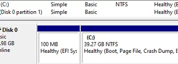 Windows では、次の場合にベーシック ボリュームを拡張できます。