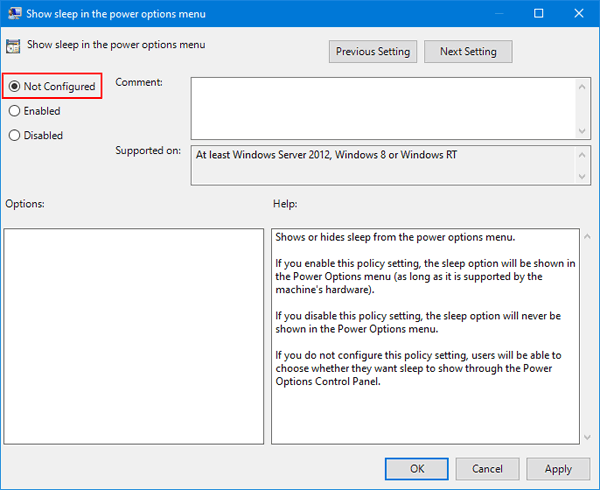 これにより、Windows の電源オプション メニューにスリープ オプションが追加されます。