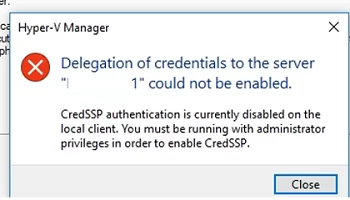 CredSSP authentication is currently disabled on the local client. You must be running with administrator privileges in order to enable CredSSP.