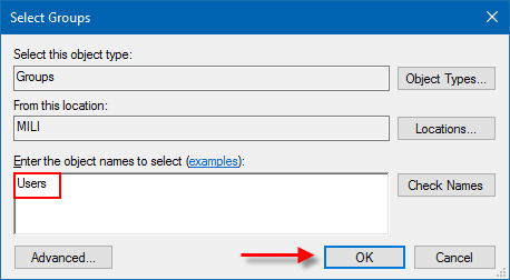 「グループの選択」ウィンドウで、次のように入力します。ユーザーオブジェクト名ボックスに入力して、わかりました.