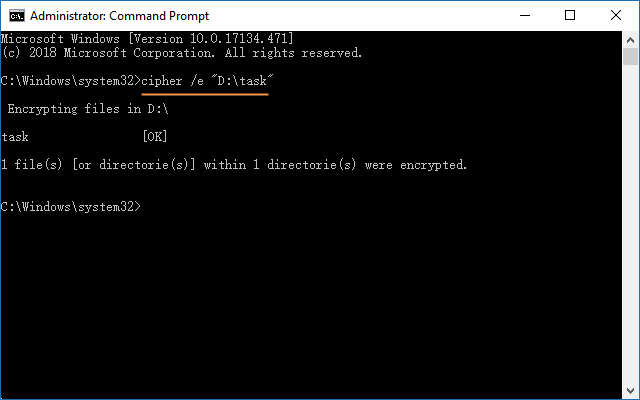 ファイルまたはフォルダーを暗号化するには、次のコマンドを入力して、入力。