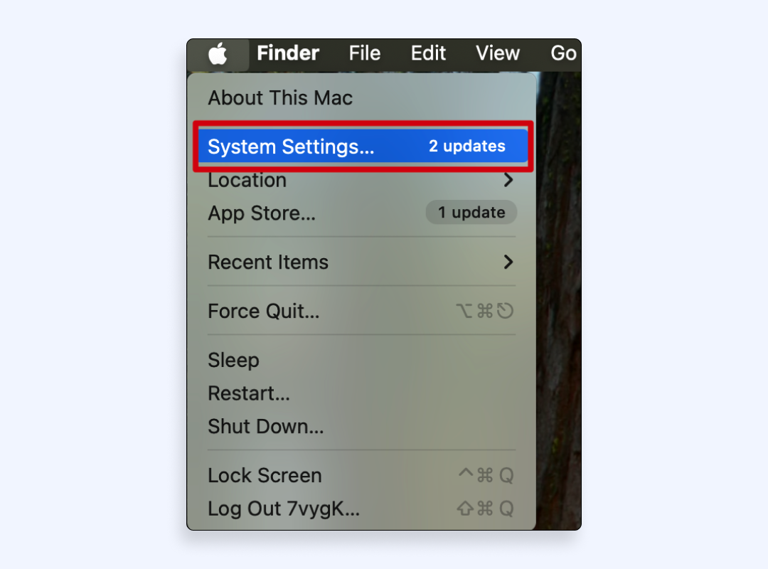 - Apple メニューをクリックし、システム設定 (古い MacOS バージョンでは「システム環境設定」) を開きます。