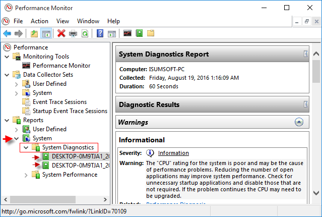 ステップ 5: クリックして展開しますシステム、展開しますシステム診断をクリックし、表示するレポートをクリックします。