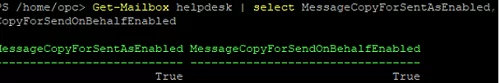 Get-Mailbox helpdesk | select MessageCopyForSentAsEnabled, MessageCopyForSendOnBehalfEnabled