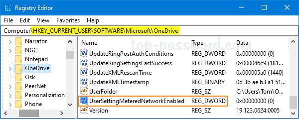 HKEY_CURRENT_USER\Software\Microsoft\OneDrive。右側のパネルで、32 ビット DWORD 値を作成する必要があります。ユーザー設定MeteredNetworkEnabled.