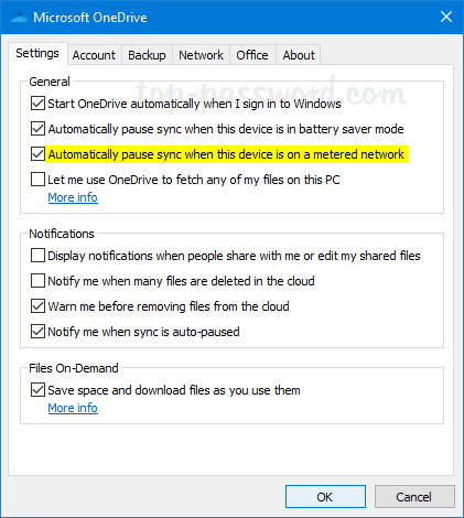 方法 1: OneDrive 設定経由で従量制ネットワークでの OneDrive 同期の一時停止をオン/オフにする