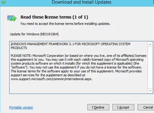 MSU ファイルから Windows Management Framework 5.1 をインストールします。