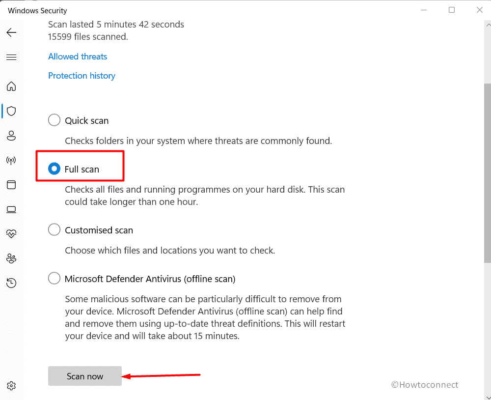 マルウェアも、Windows 11 で ArmourySwAgent.exe エラーを引き起こす要因です。これらの脅威を駆除または隔離するには、Windows Defender が最適なソリューションであるため、以下のガイドを使用してこれのフル スキャンを実行します。