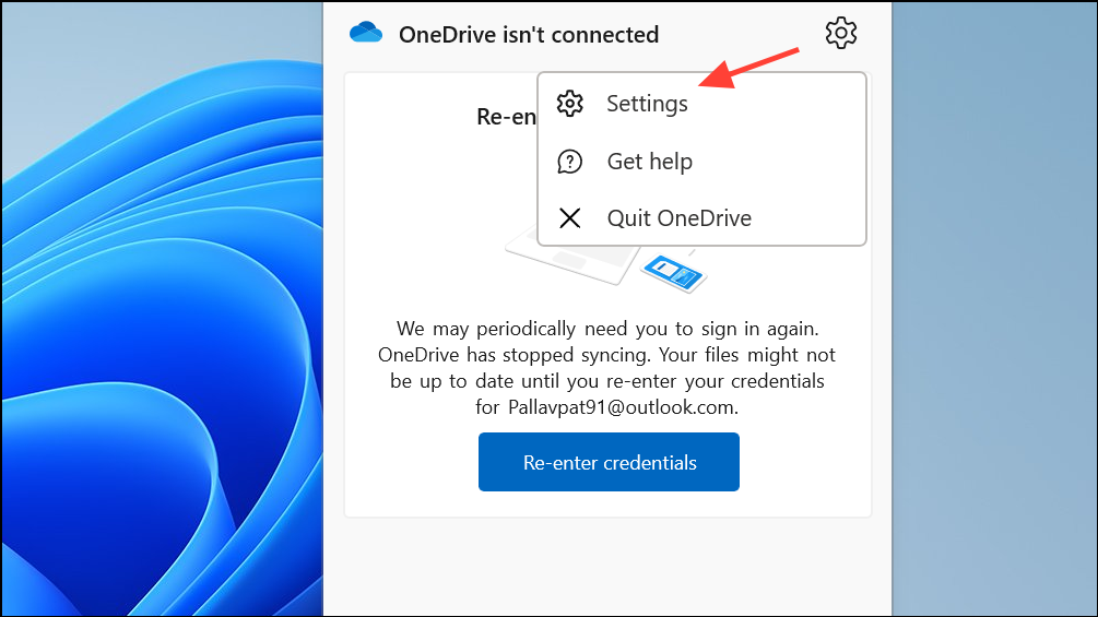 ステップ 1:システム トレイの OneDrive アイコンを右クリックし、[OneDrive] を選択します。設定.