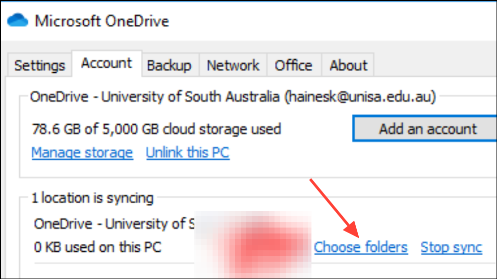 ステップ 2:の下でアカウントタブ、クリックフォルダーの選択同期する必要のないフォルダーの選択を解除します。アプリケーション ログやビルド出力フォルダーなど、ファイルの回転率が高いディレクトリの同期は避けてください。